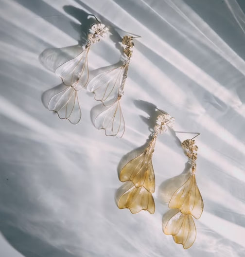銀雪白水晶花垂墜耳環